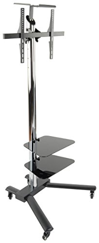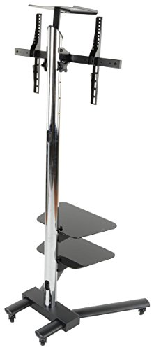 -. Binding : Electronics -. Brand : Displays2go -. Color : Silver -. Feature : Fits 32" to 84" flat screen monitors that weigh less than 154 lbs. / Height adjustable mount positions a monitor at different set heights. / Video camera shelf allows for video conferencing. / In-post cable management keeps wires free from tangles. / Displays2go SKU#: LM1024SF6 -. Label : Displays2go -. Manufacturer : Displays2go -. Model : D2G22553 -. MPN : D2G22553 -. PackageQuantity : 1 -. PartNumber : D2G22553 -. ProductGroup : Speakers -. ProductTypeName : AV_FURNITURE -. Publisher : Displays2go -. Studio : Displays2go -. Title : Mobile TV Cart for 32" to 84"+ Flat Screen Monitors, Height Adjustable Tilting Bracket and Video Camera Mount, Includes 2 Glass Shelves, Steel (Silver)
