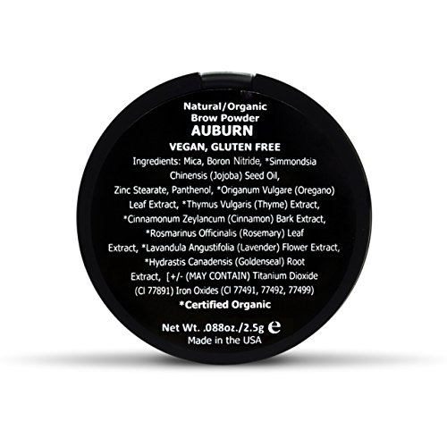 -. Feature : Made with certified ORGANIC and ALL NATURAL ingredients - ZERO artificial colors, preservatives or fragrances / Made in the USA, 100% VEGAN, cruelty-free and GLUTEN-FREE makeup / LONG-LASTING formula for all-day wear with a SOFT, NATURAL appearance / Conditioning organics blended with natural ingredients add COLOR and DIMENSION to your brows / Innovative easy-to-wear WATER-PROOF formula goes on SMOOTH and STAYS put (brush sold separately)
