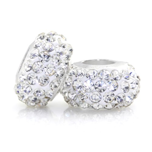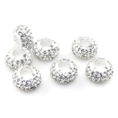 JewelrieShop 6 Pcs Crystal Rhinestones Spacer Charm Big Hole European Beads for Bracelet