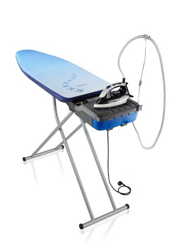 -. Feature : Komplettsystem, bestehend aus Aktiv-Bügeltisch und integrierter Druckdampf Bügelstation / alle Funktionen lassen sich zentral an einem übersichtlichen Bedienfeld steuern / An- und Absaugfunktion fixiert die Wäsche, sorgt für eine schnelle Faserdurchdringung und leitet überschüssigen Dampf ab / 6-fache Höhenverstellung, Transport- und Kindersicherung / Bügeleisen auf der Ablage sicher und einfach zu verstauen