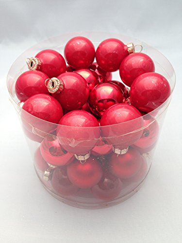 -. Feature : Christmas Baubles made of Glass / 45 Pieces / D: 1.18" / Bright red, matt and shiny