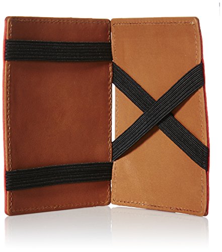 Signature embossed detail in front. Four exterior credit card slots. Elastic straps. Imported.