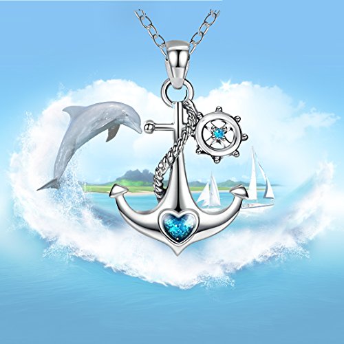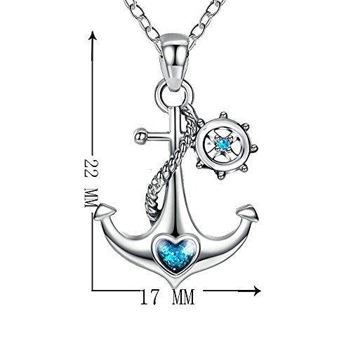 Ocean Blue Heart Anchor Pendant Size:22*17 mm,Rudder Size:11*7mm,Rolo Chain Length:18",Width:1.2 mm,Spring-ring Clasp
