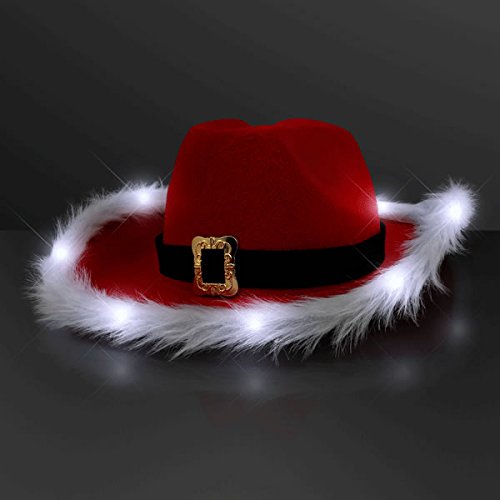 Studio : blinkee Publisher : blinkee Binding : Toy Product Description Yew-haw Yall! This adorable furry felt Santa Clause Hat is a must have this Holiday season! X-mas shopping, cutting down your holiday tree, Christmas plays and parties, or caroling with friends, this Cowboy Santa Clause Hat will spread Christmas cheer where ever you go. Giddy up the reindeer and get ready for some magical holiday fun!A?To activate your LED Flashing Christmas Cowboy Red Santa Clause Western Holiday Hat, remove the pull tab from the battery house, located in the inside, and press the button. Cycle through 3 LED light functions:FlashBlinkSteadyOne size fits most - up to 22"Cowboy Santa Claus Christmas Hats come ready to use with 3 replaceableA?AG10 Batteries.A? LED Flashing Christmas Cowboy Red Santa Clause Western Holiday Hat by Blinkee Western, Red, Rainbow Multicolor, Holidays, Christmas Blinky Lights and Flashing Party Favors, LED Fashion and Costumes, Light Up Hats, All Products 0