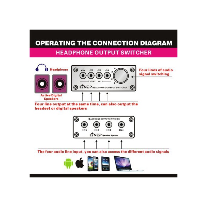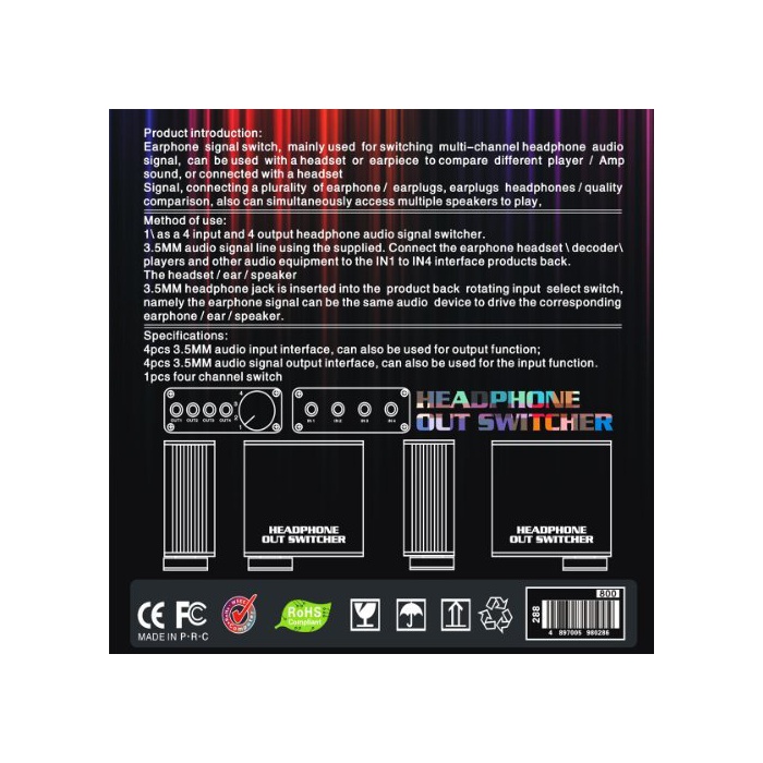 세트 내용:본체×1,3.5스테레오 잭×4 고, 출력3.5스테레오 잭×4