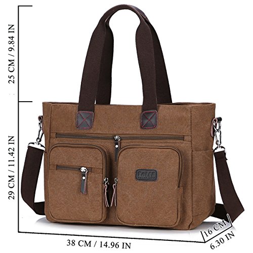 100% ToLFE Brand New! Item Type: Handbag Outer Material: Durable 100% cotton washed canvas, which adopts finished products washing process with high-quality cotton canvas. Inner Material: Polyester Closure: Zipper DIMENSIONS: 13.78'(L) x 3.94'(W) x 11.02'(H), fits up to 14" laptops, easy to carry A4 size book. Interior Pockets: 9 Exterior Pockets: 7 Style: Vintage Size may be 2 cm/1 Inch in accuracy due to hand measure; ----------------------------About The Return Policy---------------------------- We offer convenient after-sales service: If the item broken,damaged or wrong item received, customer only need to send a picture to us will be ok, and then we will refund or resend in 24 hours,and customer need not to return it to us. If customer do not like it, we can offer return, or give several suggestions we think is better or more convenience. If for other reasons, we encourage our customer contact us, we will response in one business day and do our best to service you. 0