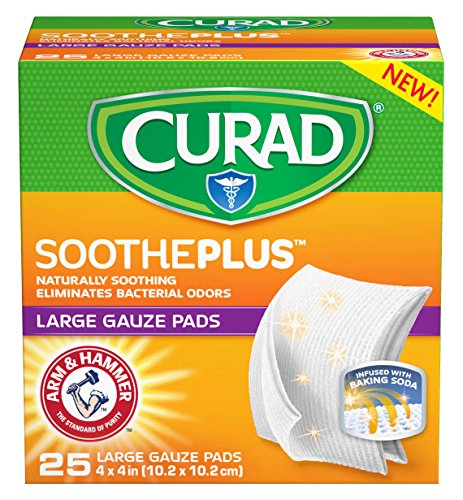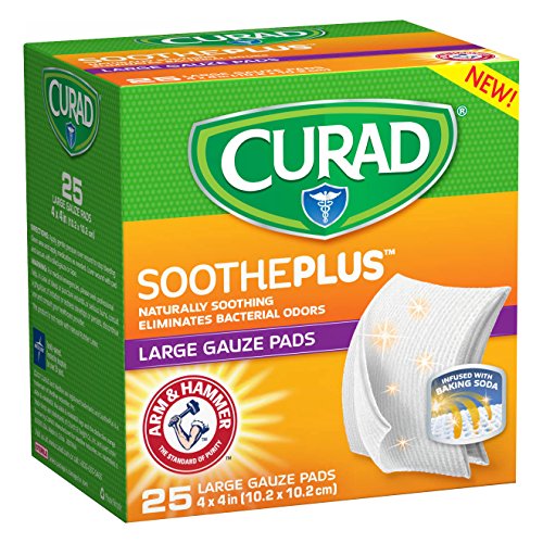 Curad CUR204425AH Soothe Plus Large Gauze Pads with Arm and Hammer, 4" x 4" (Pack of 25)