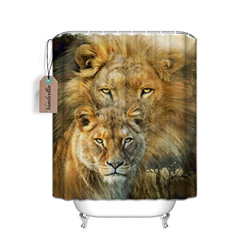 Home&Family Custom Waterproof Bathroom Shower Curtain with Rings with Cool Lion Couple Animal Love Design 66 x 72