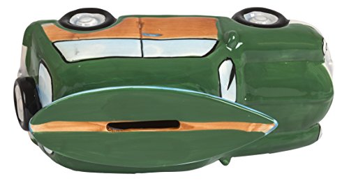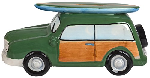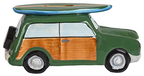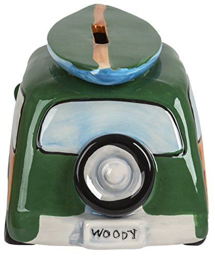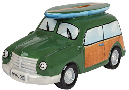 Ceramic Woody Coin Piggy Bank w/ Surfboard Green 7.5" X 3.25" X 3.25"