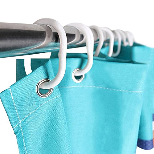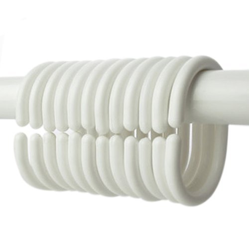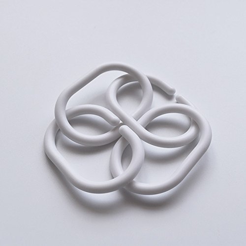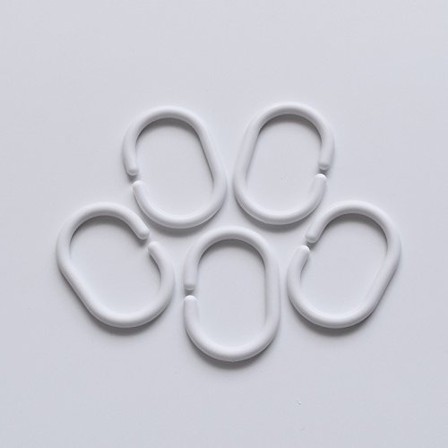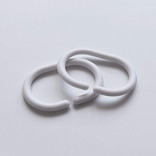 CCHLO Curtain Hooks for Bathroom Shower Rings White Polypropylene C Type Flexible Plastic, Set of 12
