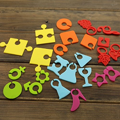 -. Feature : Identify and label your glass with our glass markers charms! / Hook style that does not fell off easily like suction cups. / Set of 24 - Ideal for wine, dinner, cocktail parties, brunches and barbecues / Made of Silicone. Easy to clean - handwash / Fits most wine glass stems. Great idea for party!