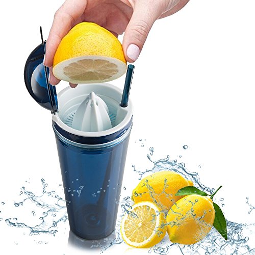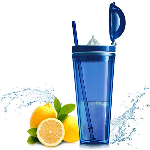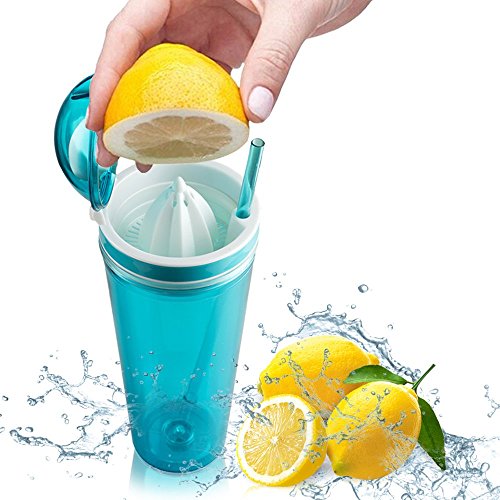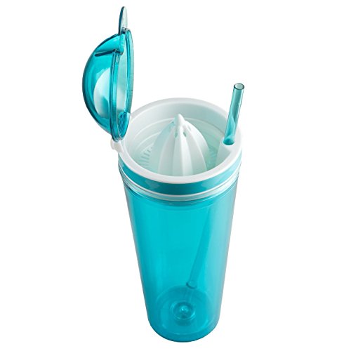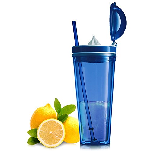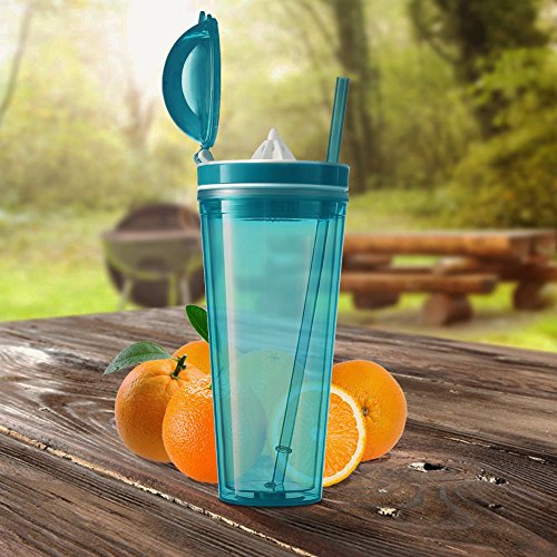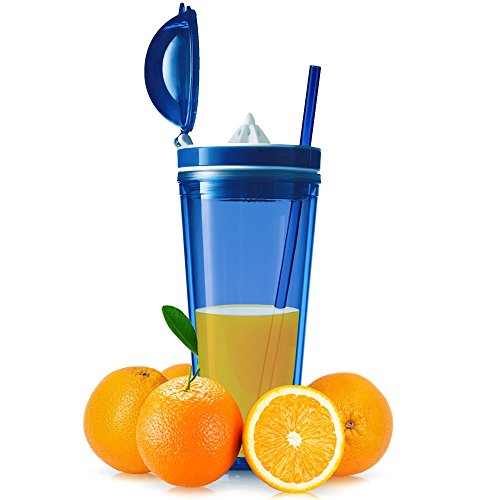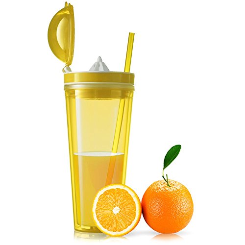 -. Feature : PERFECTLY PRESERVES BOTH COLD AND HOT DRINKS: This premium quality 4" D x 9.5" high tumbler has a double wall construction that promises excellent insulation. Whether you prefer hot or cold drinks, this is the best choice for you as it promises to preserve your beverages and allow you to fully enjoy them. / BUILT-IN JUICER THAT HELPS YOU MAKE YOUR FAVORITE FRUIT JUICE: This tumbler can also function as a juicer. Actually, it features a built-in juicer that allows you to make fresh juice of your favorite kind and take it with you at work or at the gym. / 100% SAFE MATERIAL: Do not trust poor quality bottles that might be unsafe for you to use. This top notch juicer tumbler is made of BPA free material and it meets all FDA requirements so as to assure you that you will not be exposed to any kind of danger. / SEMI LEAK-PROOF LID TO PREVENT ACCIDENTS: Forget about poorly made bottles that soon turn into a wet, reeking mess. This amazing juicer tumbler has a tight fitting lid that saves you from spilling accidents as the only way for the liquid to get out is turning the tumbler upside down. / STRIKING COLOR: Carry this amazing tumbler with you at all times, remain properly hydrated and impress with your style. It features a unique, bright color and it comes with a matching 10'' straw.