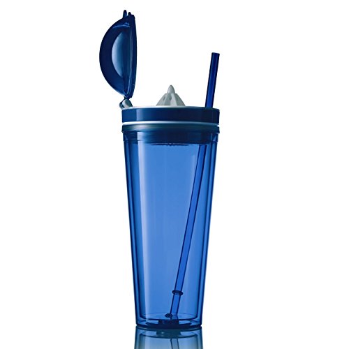 -. Title : 20-oz Tumbler Juicer With Double Wall Construction For Perfect Insulation And Built In Juicer | Dark Blue Color, High Quality BPA Free Tumbler Meets FDA Requirements, 10'' Straw Included