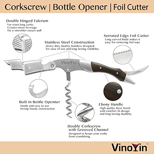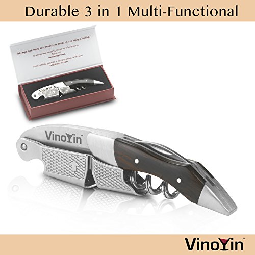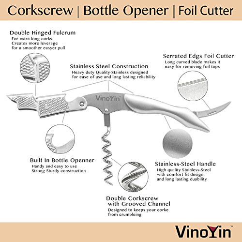 -. Title : All In One Waiter's Corkscrew Gift Set - Stainless Steel - Includes Wine & Beer Bottle Opener and Foil Cutter, with Gift Box by VinoYin