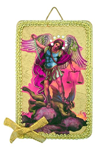Archangel Saint Michael Icon 4 Inch Ornament or Wall Plaque with Textile Border