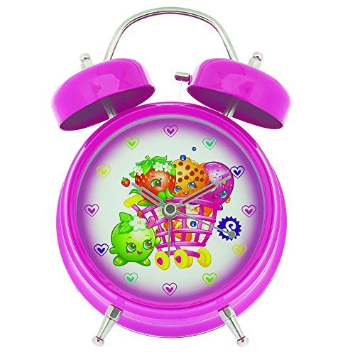Adorable pink shopkins twin bell desk clock, with a bell ringer and an analog display with the cutest and most collectible characters from your favorite shops!