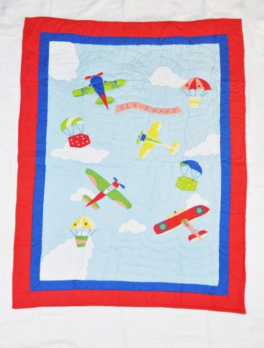 Studio : Be-you-tiful Home Publisher : Be-you-tiful Home Binding : Misc. Product Description Airplanes Fly Away baby quilt is made of 100% soft cotton. Features airplanes and clouds appliques on front side of quilt. Quilt is machine washable. Baby quilt dimensions are 36"x50". Made in India. 0