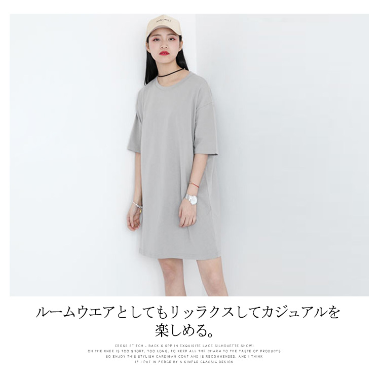 | 大人シンプル/一枚で決まるワンピースがきたいの。豊富な8カラー展開で秋口まで着回しOK!生地は薄手で柔らかな肌触りのカットソー素材を使用し、着心地が快適です。短めのショーパンと合わせてワンピースっぽく着ても、スキニーと合わせて着ても可愛い♪ルームウエアとしてもリッラクスしてカジュアルを楽しめる。着回し力◎の便利アイテムは持っていると重宝すること間違いなしです。 | |