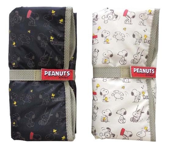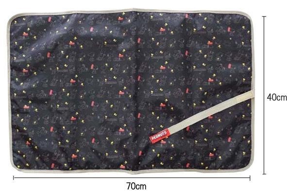 スヌーピーのイラスト柄のかわいいおむつ替えシートです。折りたたむとお出かけに便利なコンパクトサイズに!!