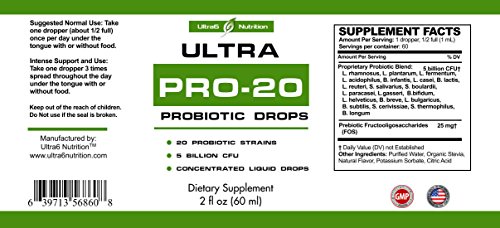 Ultra Pro-20 Probiotic Drops - 20 Strains of Probiotics including Lactobacillus Acidophilus in Liquid Form