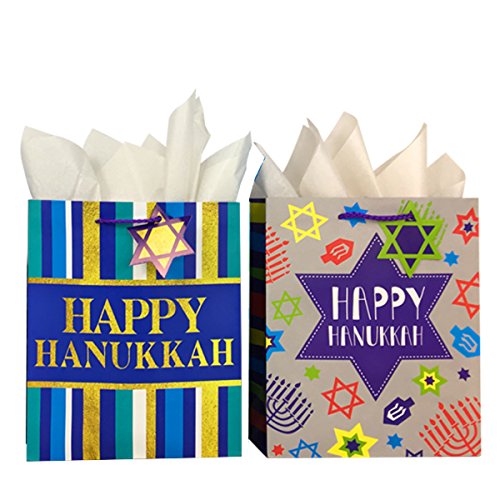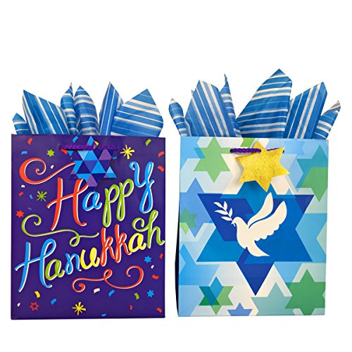 (Blue House Group)/Stationery Party Supplies/Gift Wrapping Supplies/DIRECT FROM USA/Set of Hanukkah Gift Bags and Tissue Paper (4 Bags Tissue, Hanukkah Bags)