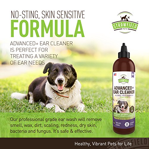 ADVANCED CAT & DOG EAR WASH - 8 oz, Apple Kiwi Scent - Powerful .2% Salicylic Acid safely acidifies the ear canal to kill Bacteria, Fungus & Microbes. Formulated for Cat & Dog Ear Infection Treatment, Cat & Dog Ear Mite Treatment, Itchy Ears Relief, Yeast Infection Treatment, Anti microbial Antifungal Antibacterial Ear Cleaner, Anti Fungal Wash, Ear Odor Remover. Effective Antiseptic Ear Wash for Dogs & Cats also works as a drying solution to help dry fluid in ears without drying out the skin