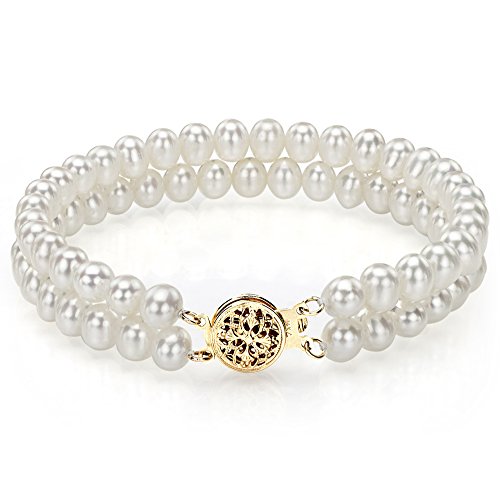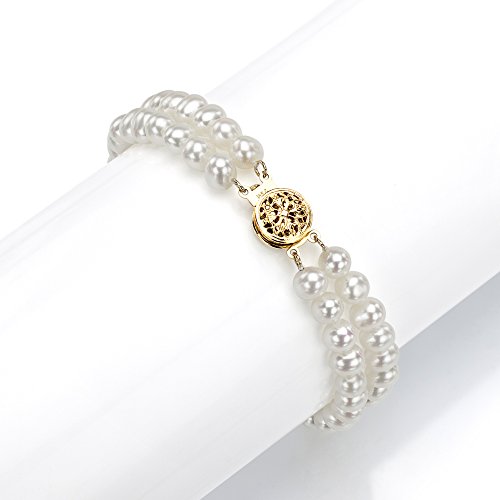 -. Title : 14k Yellow Gold 2-rows 5-5.5mm White Freshwater Cultured Pearl Round Pressure Clasp Bracelet