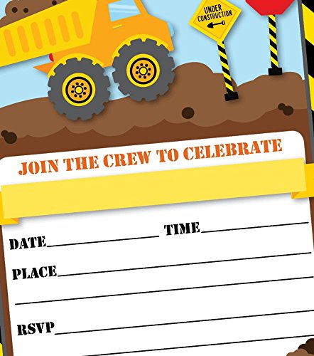 Construction Invitations and Envelopes (Large Size 5x7) (25 pack)