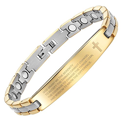 -. Binding : Jewelry -. Brand : Willis Judd -. Department : womens -. Feature : Free black velvet bracelet box included / Free link removal tool - allows you to adjust the size in the comfort of your home / Extra strong high powered magnets (3000 gauss) / Hand crafted from super strong, yet super light weight pure titanium / Please read feedback from our satisfied customers -. Label : Willis Judd -. Manufacturer : Willis Judd -. Model : TB0237 -. MPN : TB0237 -. PartNumber : TB0237 -. ProductGroup : Jewelry -. ProductTypeName : FASHIONNECKLACEBRACELETANKLET -. Publisher : Willis Judd -. Studio : Willis Judd -. Title : Willis Judd Two Tone Titanium Bracelet Engraved with The Serenity Prayer