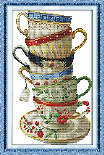 Benway Stamped Cross Stitch Kit, DIY Needle Craft, Six Elegant Coffee Cups 11ct 35x54cm