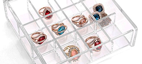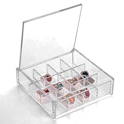 HOYOFO 12 Sections Acrylic Jewelry Tray Rings Earrings Jewelry Display Organizer with Lid