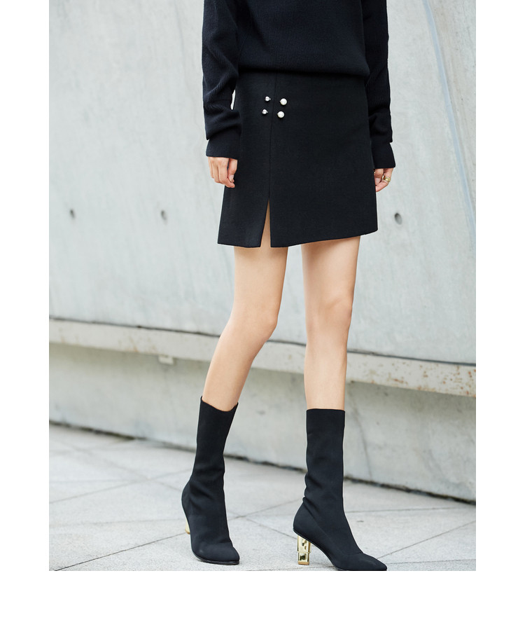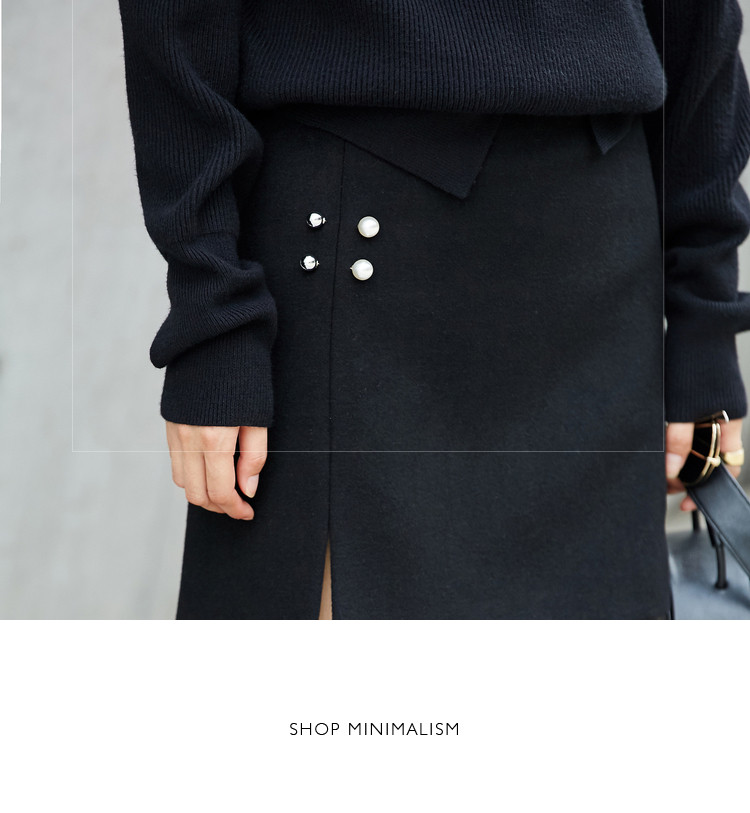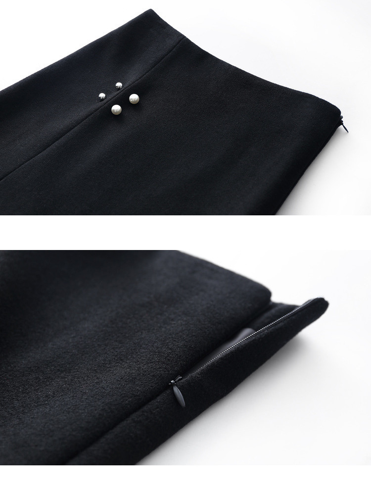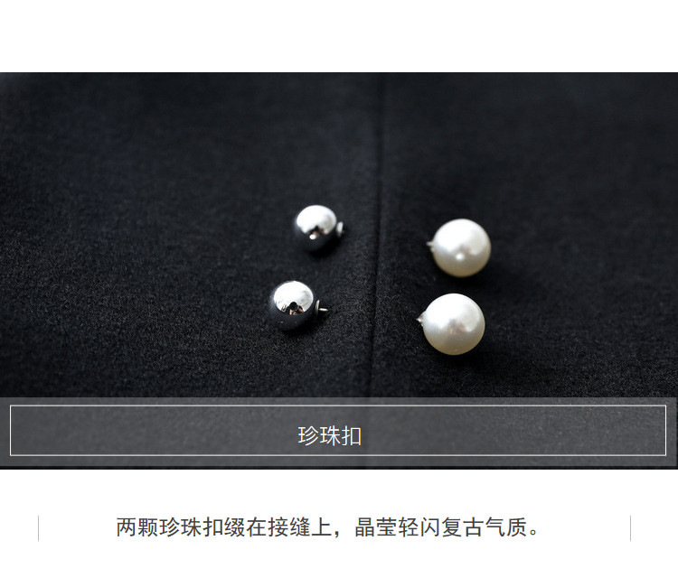 两颗珍珠扣晶莹缀在偏侧接缝上,