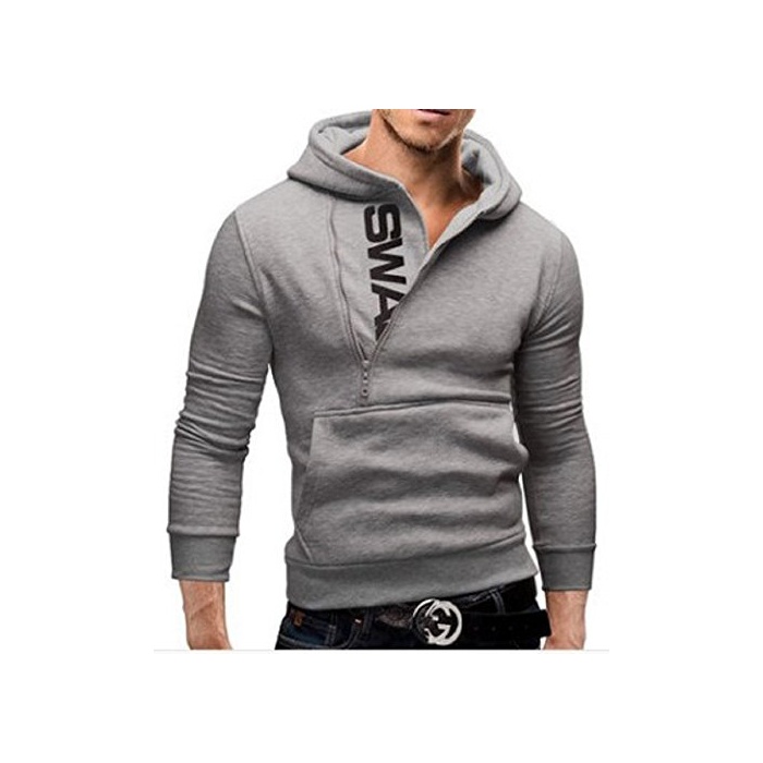 Smile lala 【Smile LaLa】 맨즈 파커 스웨트 트레이너 로고 심플 캐주얼 긴 소매 블랙 블루 그레이 레드 (L,그레이)