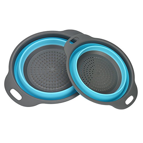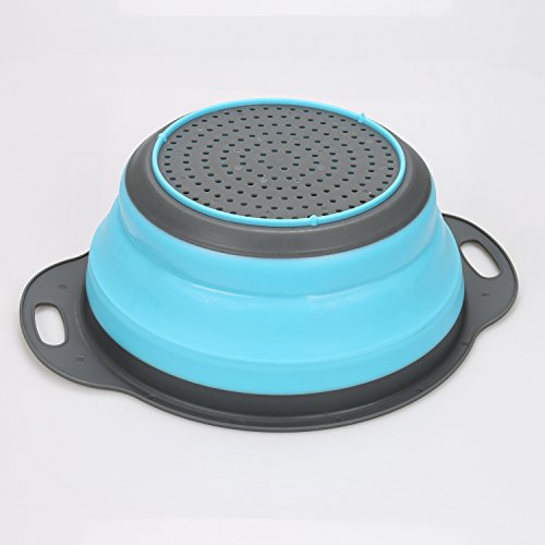 - FOLDABLE-- It is collapsible,it is made of food grade plastic and silicone, so they do not take up much room in your kitchen cupboards. Collapsed strainers is less than 2 inches high!