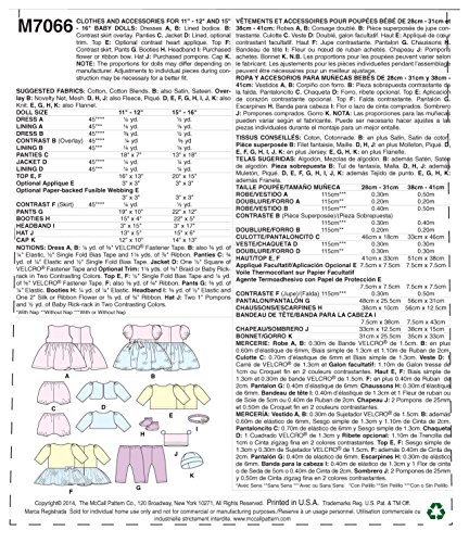 McCall Pattern Company M7066 Clothes and Accessories for 11-Inch to 12-Inch and 15-Inch to 16-Inch Baby Doll Sewing Template, One Size