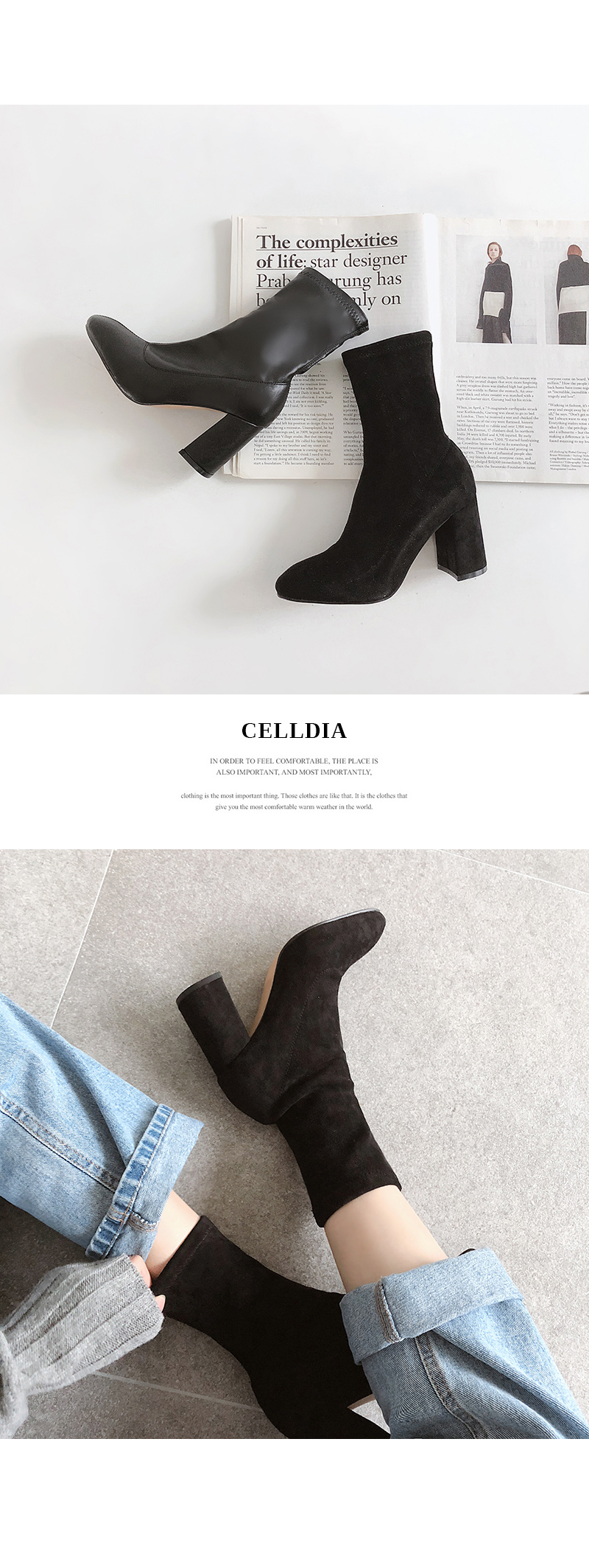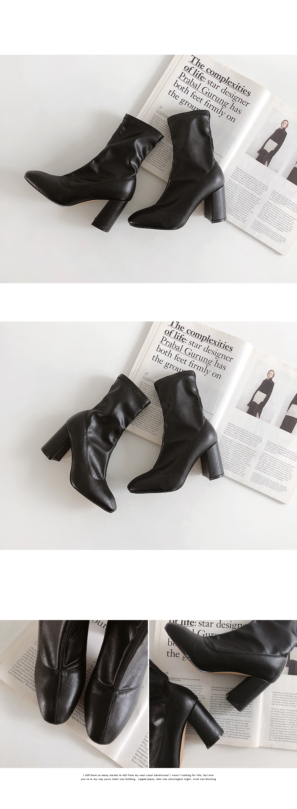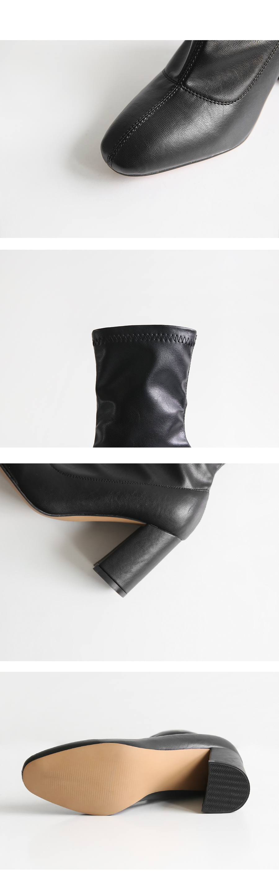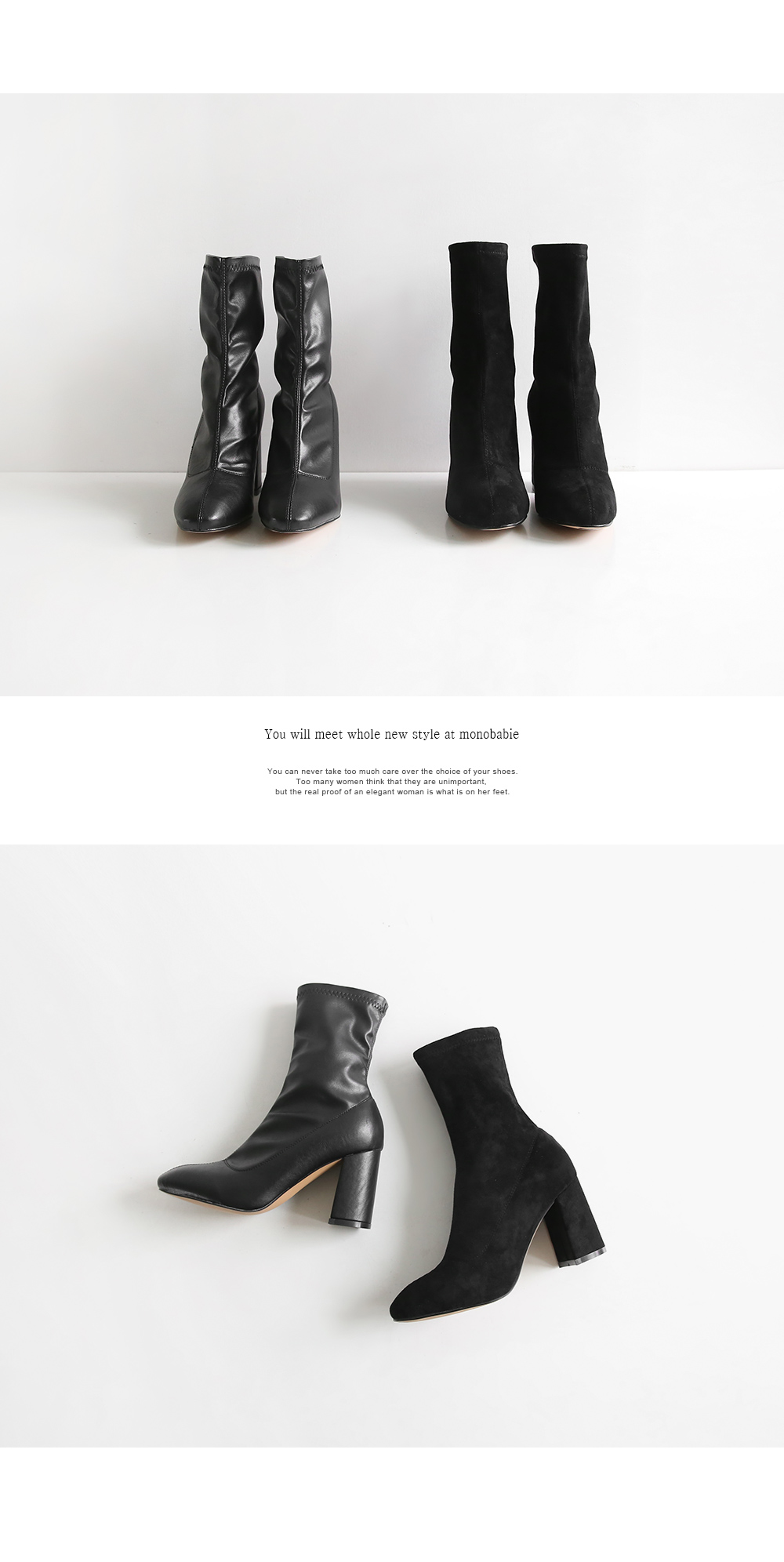 소프트한 터치감의 클린한 라인이 매력적인 청키한 하이힐굽의 데일리 앵클부츠입니다.