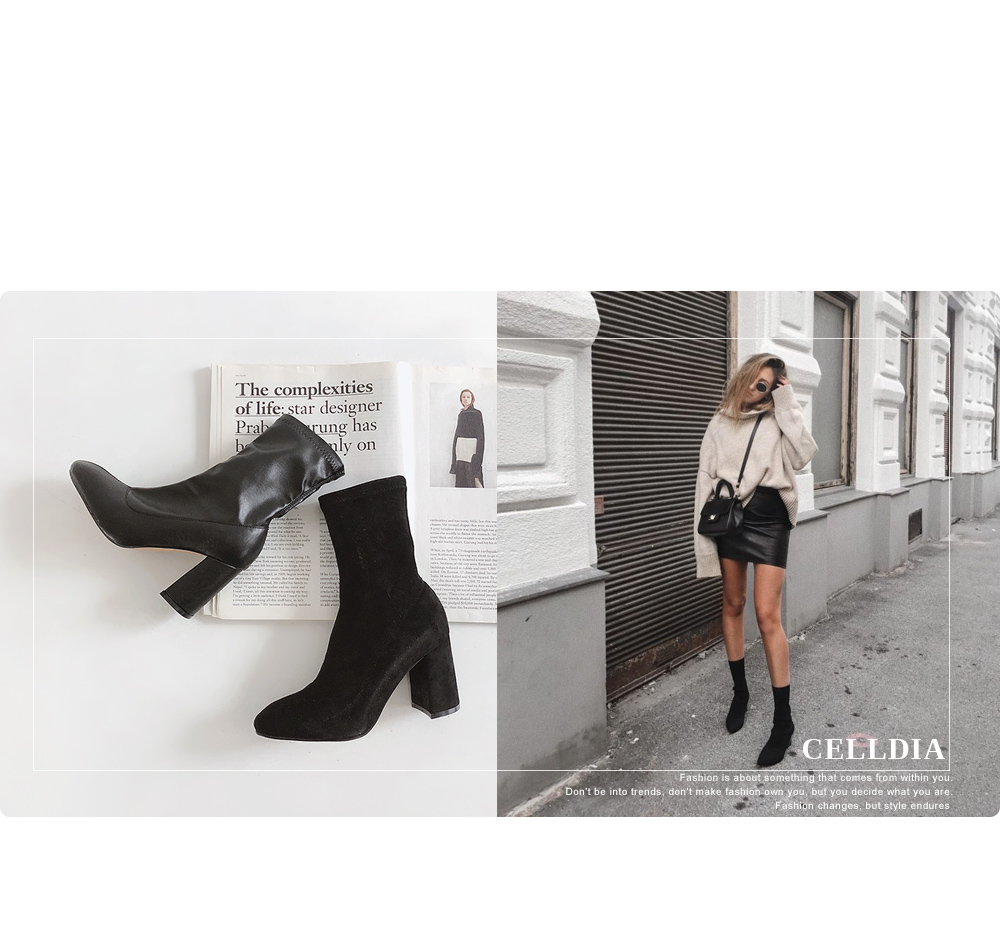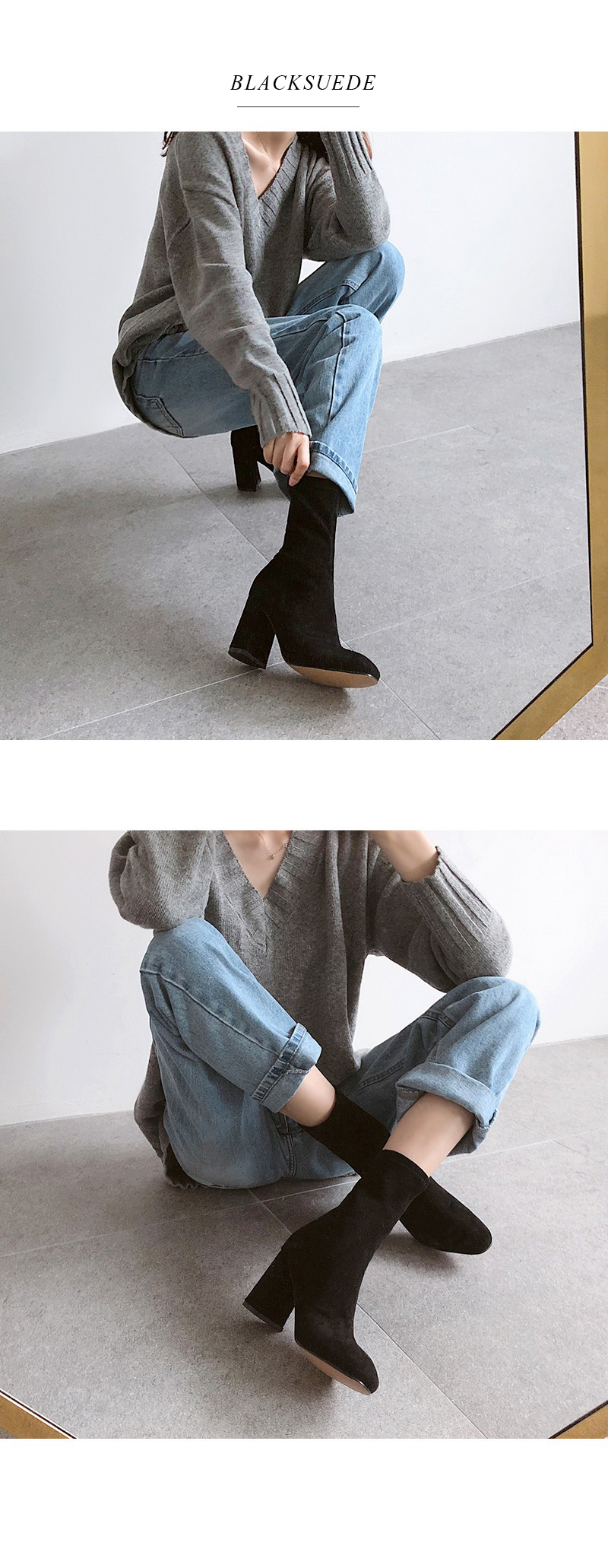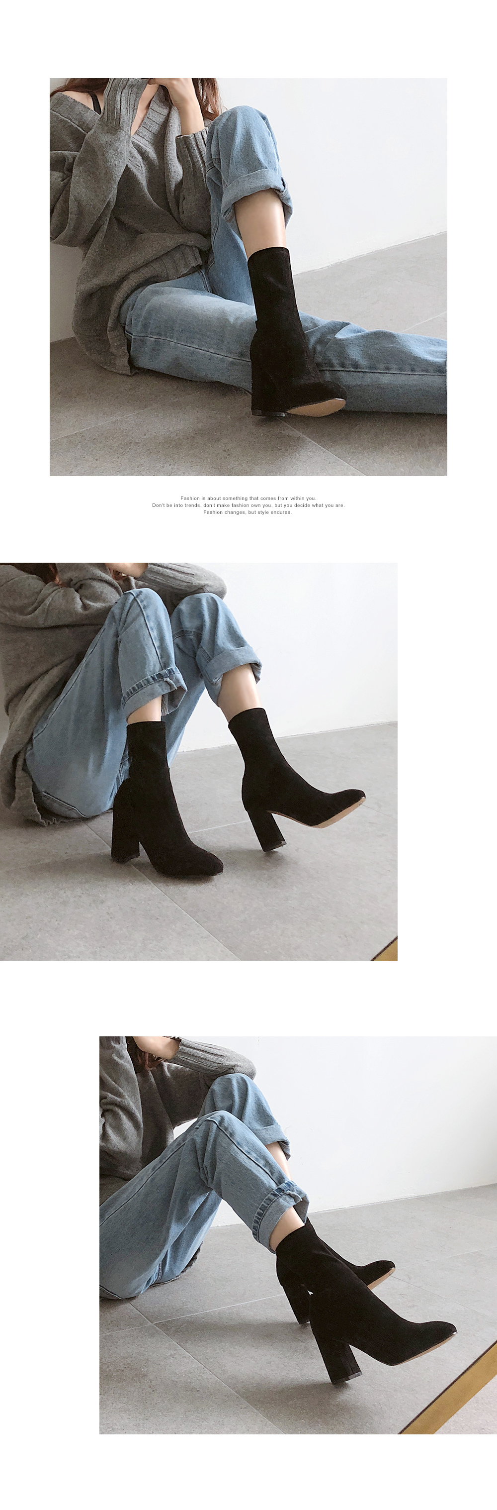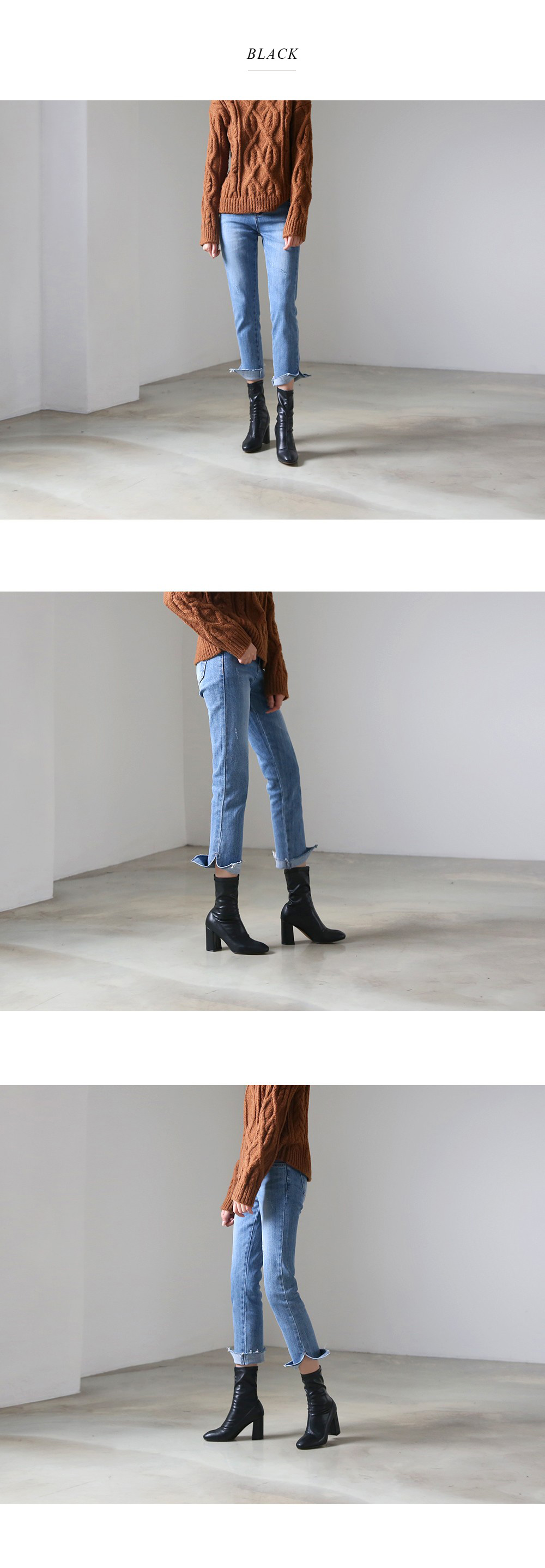 소프트한 터치감의 클린한 라인이 매력적인 청키한 하이힐굽의 데일리 앵클부츠입니다.
