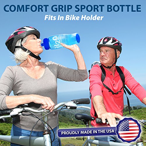You will be happy with this water bottle with the comfort grip, which makes it easy to hold. Push-pull lid. Easy to clean, hand wash only. BPA-free. Made in USA - 27 oz - Lightweight squeezable. Great for camping, biking, walking, exercise. Bottle can be recycled.