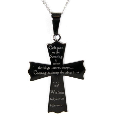 -. Title : Serenity Prayer Cross Pendant Necklace - Cross Necklace - Serenity Pendant - Recovery 12 Step Gifts