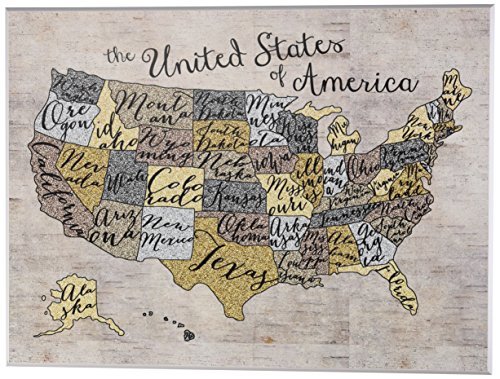 Stupell Home Décor United States Map Typography Art Wall Plaque, 11 x 0.5 x 15, Proudly Made in USA