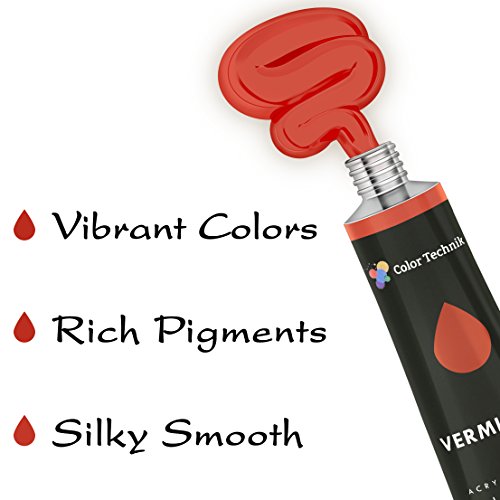 Acrylic Paint Set By Color Technik, Professional Artist Quality, Palette Included, 12 Aluminium Tubes, Best Colors For Painting Canvas, Wood, Clay, Fabric, Nail Art and Ceramic, Rich Pigments, Gift Me