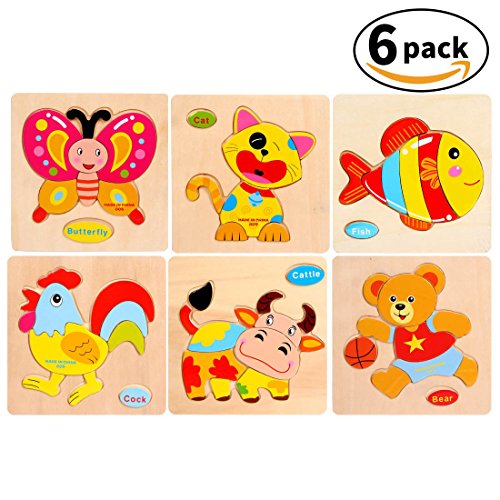 -. Feature : ♥Non-toxic paints, high quality wood / ♥Age:1-7 Years Baby and Kids, Material: Wood, Size:5.9 x 5.9 x 0.2 inches / ♥Including 6 educational wooden puzzles - perfect for little Toddler Hands! / ♥Aims at training kids imagination, eye-hand coordination and color & shape recognition / ♥Pretty colors and various lovely animals patterns can make your baby love it very much