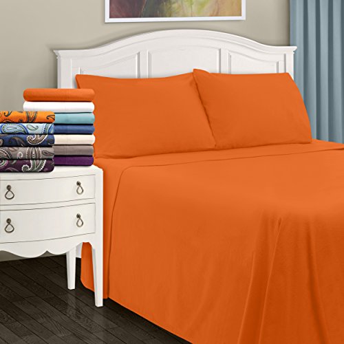 Superior Premium Cotton Flannel Sheets, All Season 100% Brushed Cotton Flannel Bedding, 4-Piece Sheet Set with Deep Fitting Pockets - Pumpkin Solid, Queen Bed