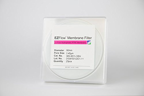EZFlow Hydrophobic PTFE Membrane Filters, 0.45um, 90mm Diameter Filter Discs, 25/PK