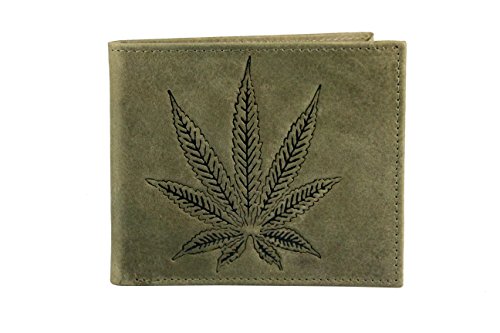 -. Title : Unique Marijuana Leaf Embossed Distressed Antique Leather Bifold Slim Wallet