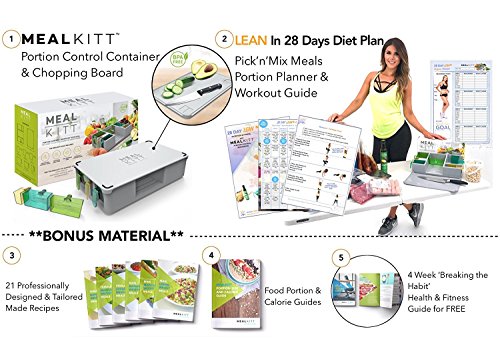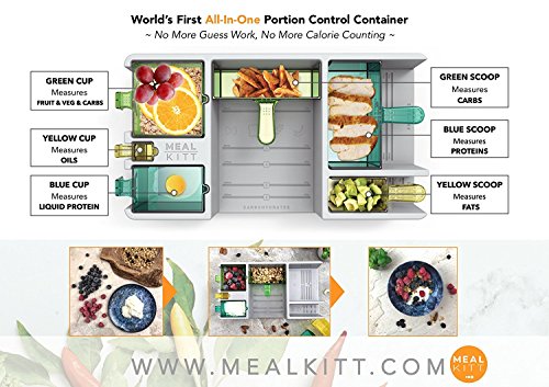 MealKitt All-In-One Portion Control, BPA Free Meal Prep Container System + The Lean 28 Day Diet/Training Guide,Color Coded,6 Containers