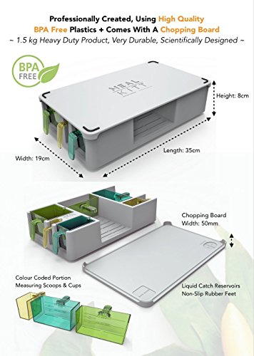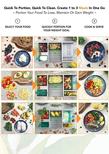 Six Color Code portion compartments: for each food group (proteins, liquid proteins, carbohydrates, fruits, fats & oils) to help you lose body fat, maintain Weight or gain muscle mass