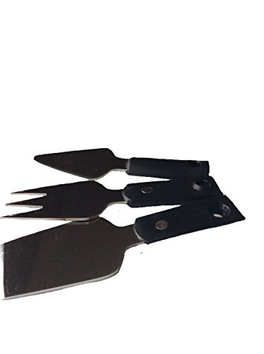 Studio : Robinson Home Products Publisher : Robinson Home Products Product Description A perfect party asset, this Set of 3 Cheese Tools is a convenient and appealing addition to any table decor: Cheese Fork is used to hold cheese in place while slicing Cheddar Spatula (narrow head with flat sharp tip) is used for cheddars, monterey, bries Cheese Knife/Spreader (almond blade with pointed tip) is used for hard cheeses Not to be used in dishwasher due to magnetic properties. 0