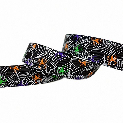 1" 30 yards (6 Mixed Lot) Halloween Ribbons Bats Spiders Pattern Printed Grosgrain Ribbon for Hair Bow Halloween Decorative Ribbons (1)