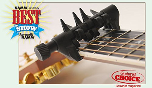 Leagues beyond conventional capos, the SpiderCapo Standard comes on the scene with a variety of new ways to look at guitar playing. When attached you can choose which strings you want to lock into place and which ones to leave open so you can play countless tuning possibilities without the need to d-tune your guitar. Unlike d-tuning your instrument, you can continue to play standard chords so it's easy to work with. Play above or below the SpiderCapo for limitless options that will astonish your friends and fans.